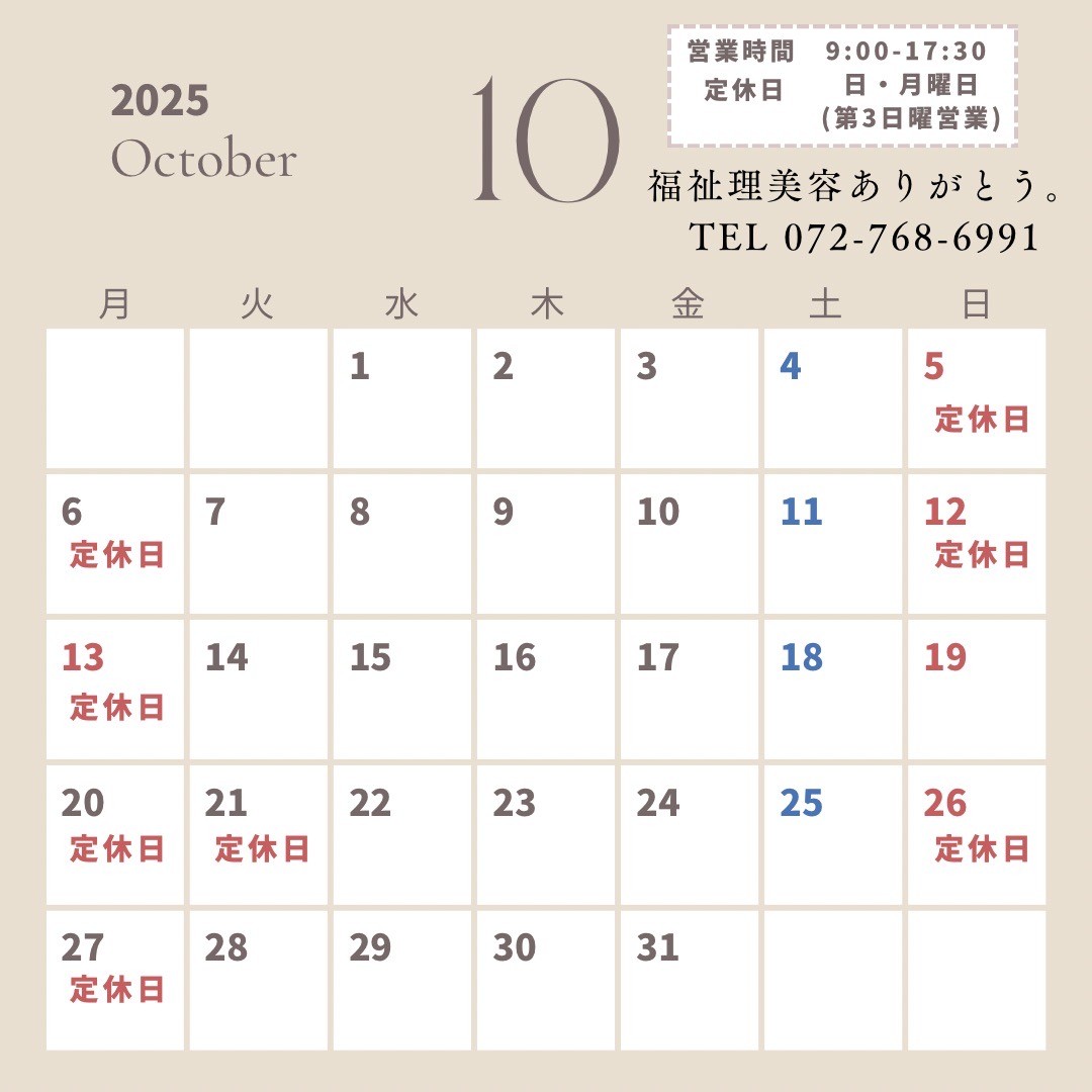 【10月の営業について/福祉理美容ありがとう。】