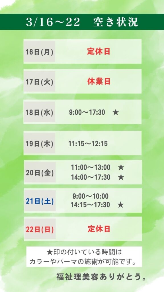 3月14日17時時点の空き状況です。